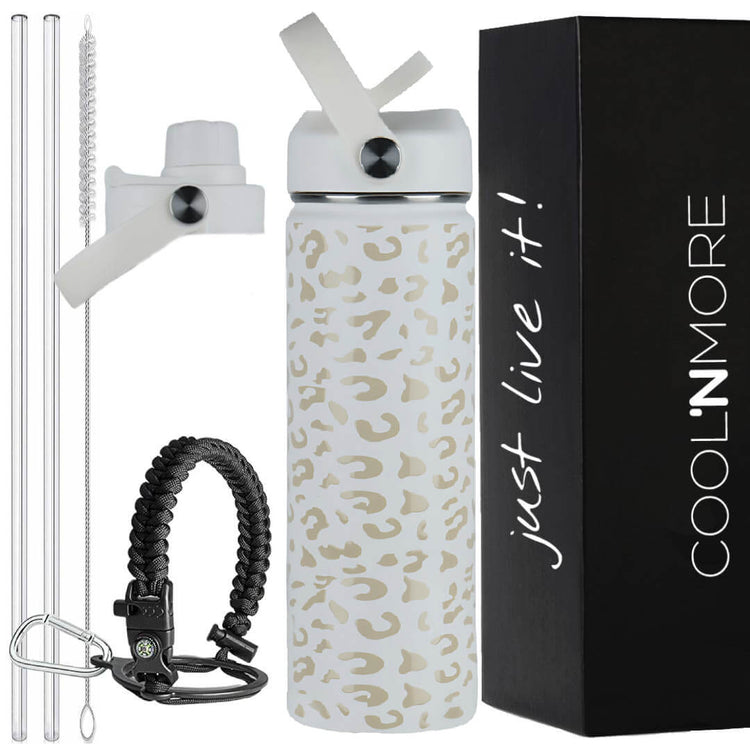 Coolnmore White Leopard παγούρι θερμός 500ml με καλαμάκι και 7 αξεσουάρ